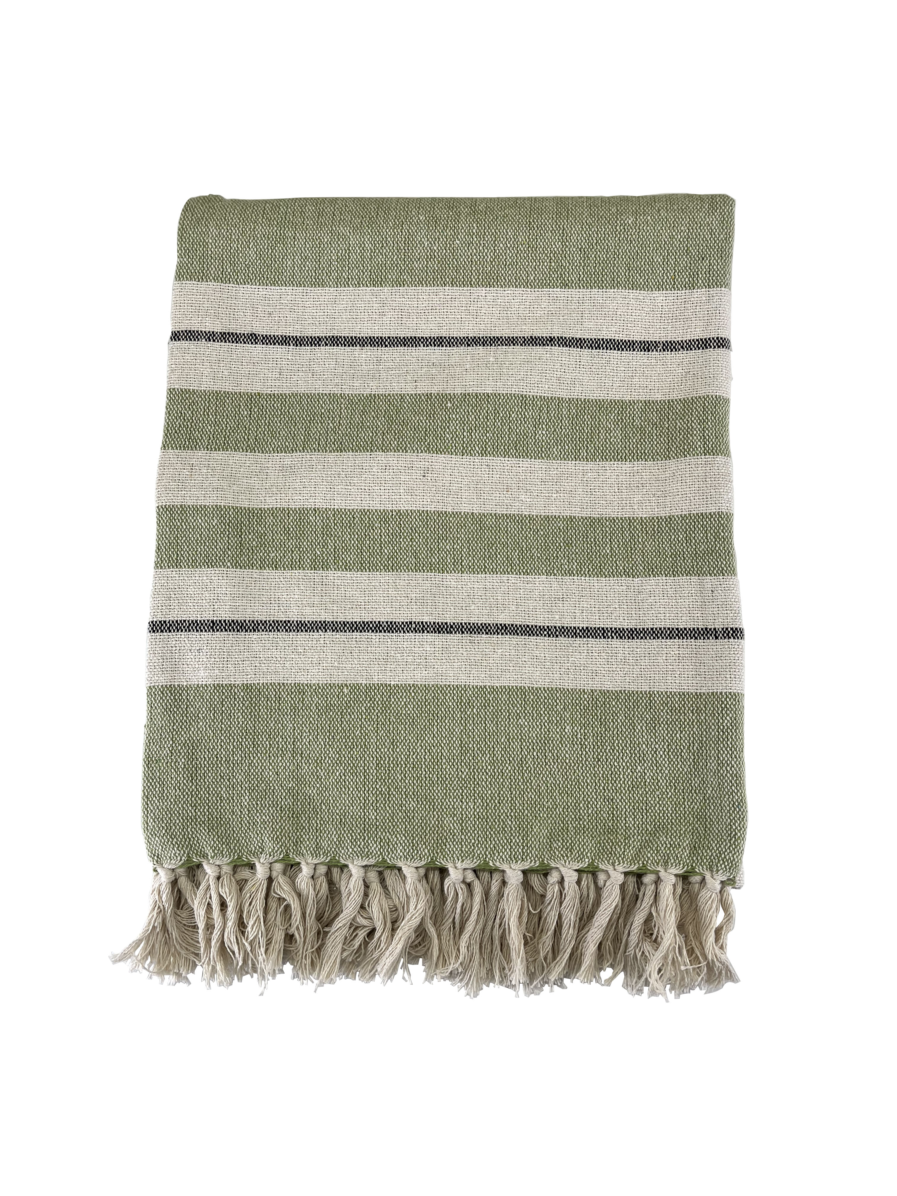 アップサイクル コットンスロー マリンボーダー グリーン