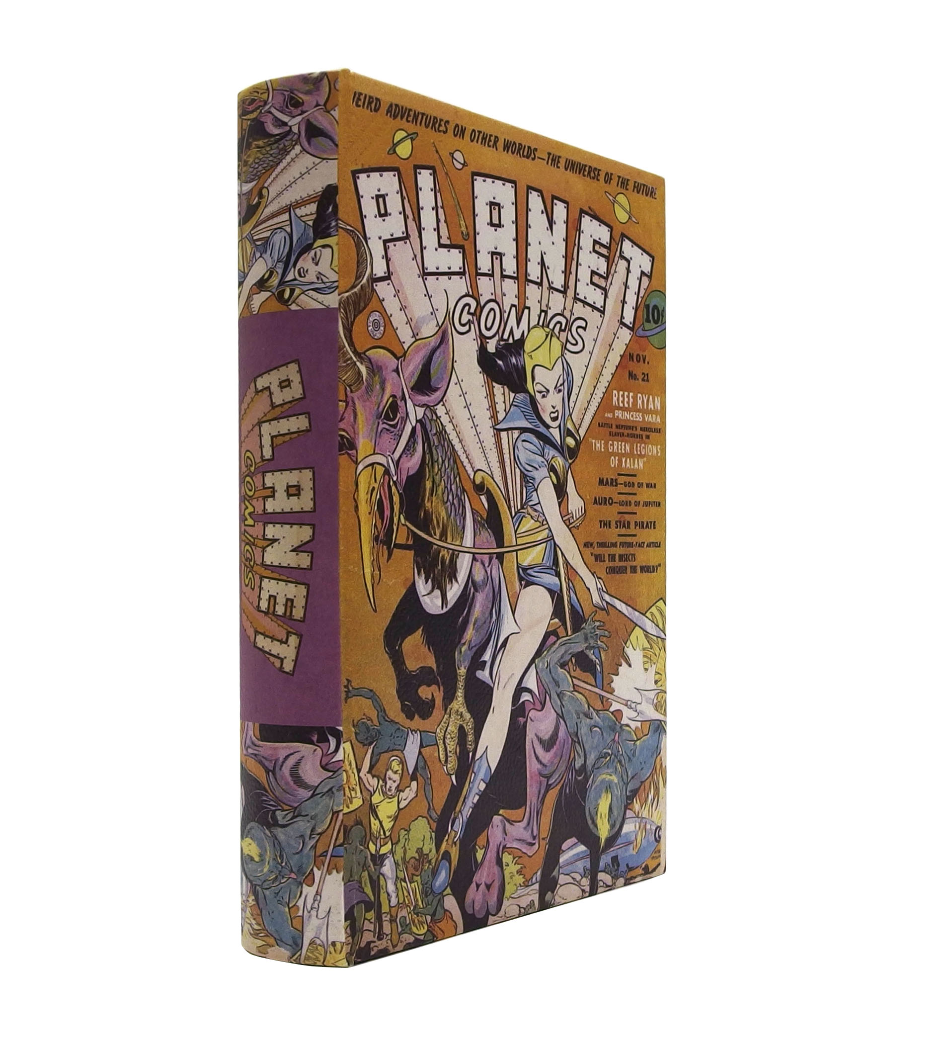 まるで本物のアメリカンコミックのようなブックボックス。背表紙にはコミックらしい広告がデザインされています。
