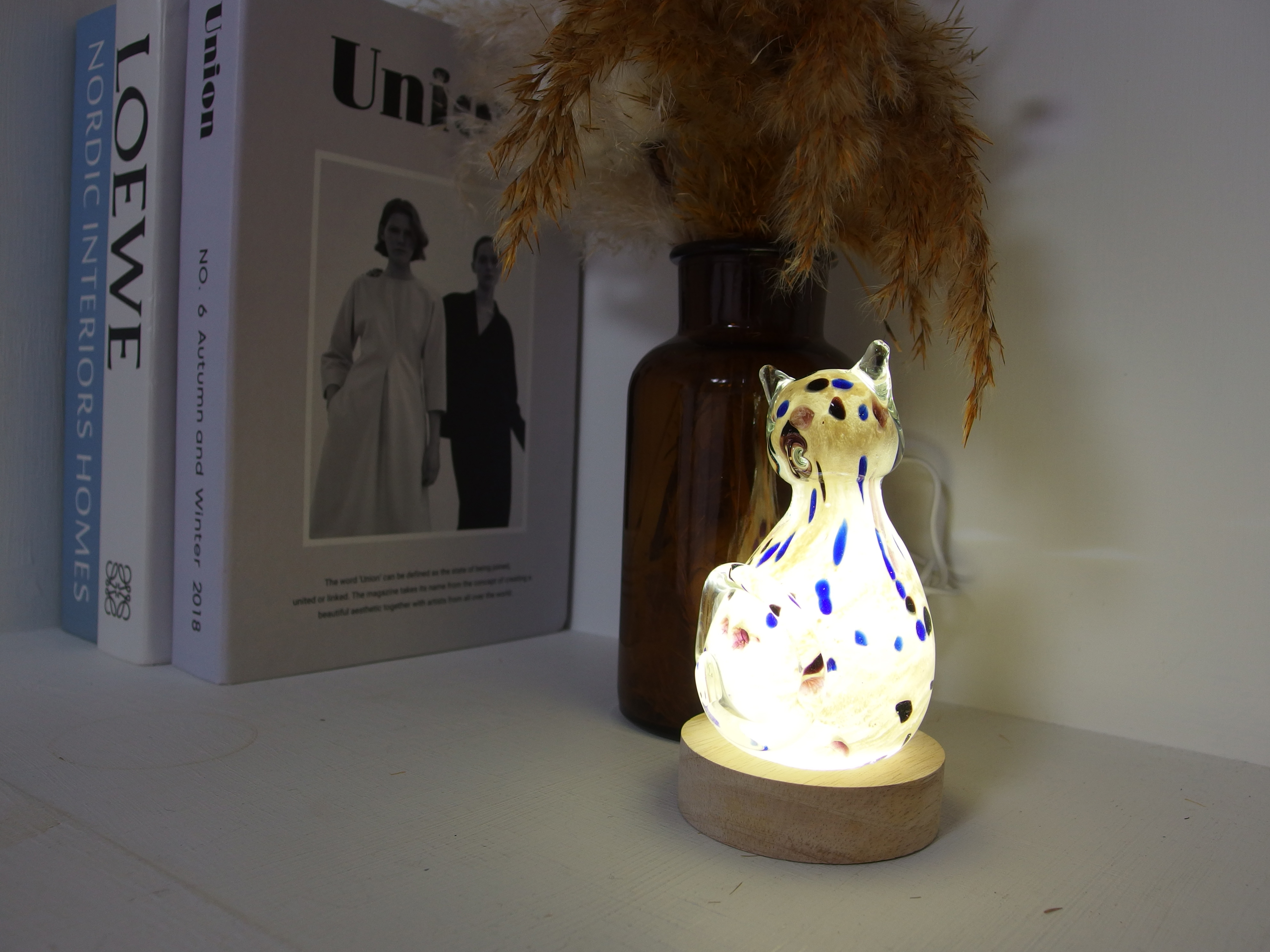 形のかわいいペーパーウエイト。置くだけでもとてもかわいいデコレーションになります。別売りのテーブルライトを使用すれば、素敵なテーブルライトに早変わり。贈り物にもおススメです。