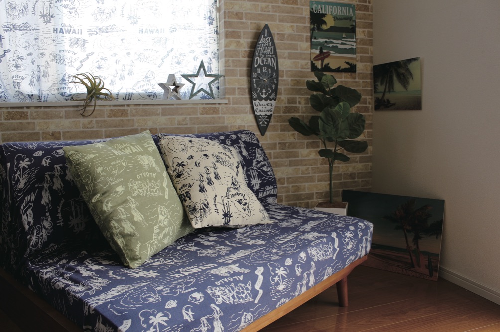 ウ゛ィンテージアロハ クッションカバー ネイビー