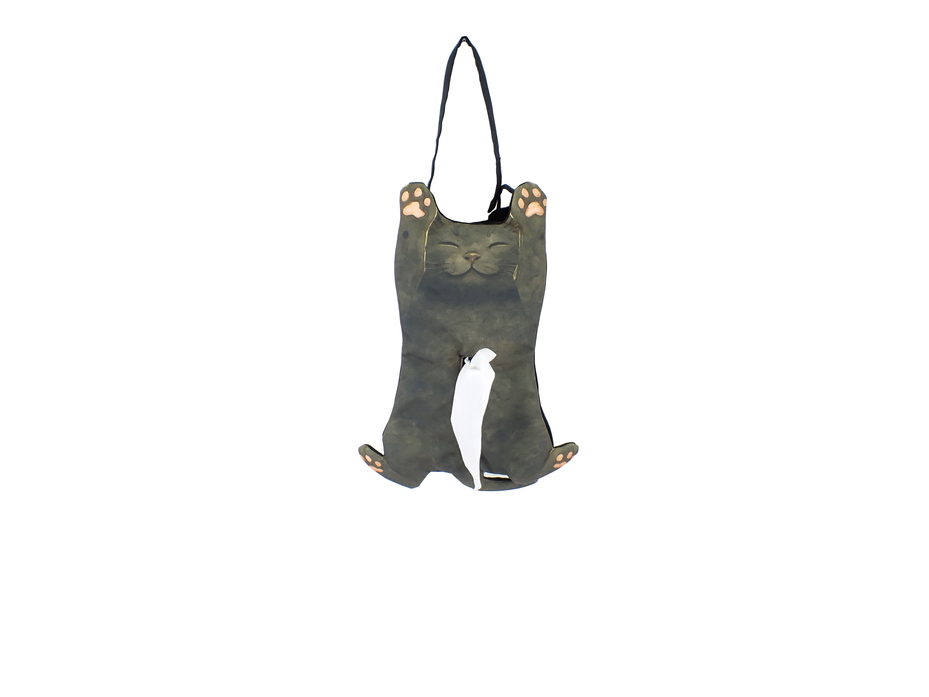 ねこが寝っ転がったデザインのティッシュボックスカバー。リビングやお部屋、車でもほっことした雰囲気を与えてくれます。